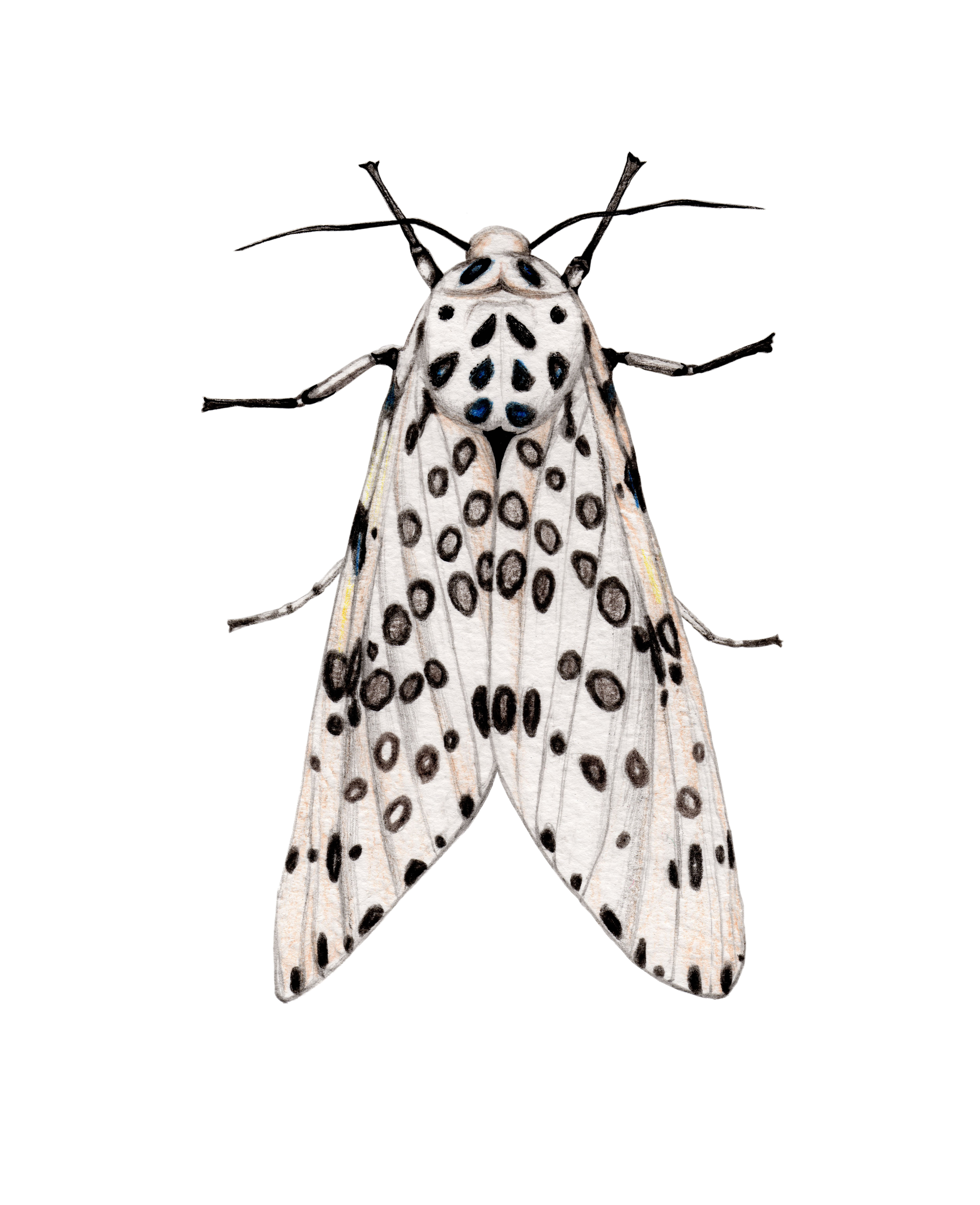 La zeuzère du poirier (Zeuzera pyrina) est un joli papillon nocturne, blanc et moucheté de noir. Cette couleur lui vaut également le nom de papillon léopard. Sa chenille est jaune à points noirs et creuse des galeries dans de nombreux arbres ou arbustes pour se nourrir. Parmi ses plantes préférées, on retrouve les poiriers, les pommiers, les cerisiers, les agrumes, les oliviers, les groseillers, les cassissiers…